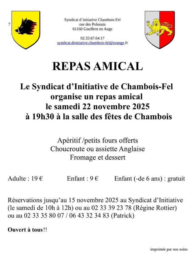 Infomations et réservations avant le 10 novembre au Syndicat d'Initiative.